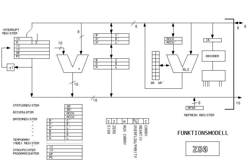 Der Z80 hat relativ viele interne Register, ist aber in Hinblick auf die verfügbaren Adressierungsarten etwas eingeschränkt.
